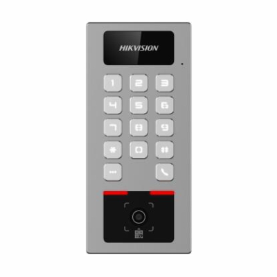 Вызывная панель домофона с функцией контроля доступа | Функции: Вызывная панель домофона / Контроль доступа / Считыватель бесконтактных карт доступа / Кодонаборная клавиатура / Несколько режимов аутентификации / Разблокировка пропускного пункта | СКУД: Считыватель бесконтактных карт 1×Mifare 13.56Mhz / Код доступа / QR-Код | Интерфейс: Ethernet 1×RJ45 10M/100Mbps / 1×Wi-Fi 2.4GHz IEEE802.11b/g/n / 1×Bluetooth / Аудио 1×Микрофон/1×Динамик / Сигнальный 1×Вход/1×Выход / Реле 1×Выход / 1×Wiegand 26/34 / 1×RS485 / 1×Кнопка доступа / 1×Датчик двери / 1×Тампер датчик вскрытия и демонтажа устройства / 1×MicroSD Карта памяти до 256Gb / Блок управления 1×Контроллер | Облачный сервис: HIK-Connect | Доступ и управление с мобильных устройств: HIK-Connect | Управление: HIK-Connect / Клавиатура с кодонаборником / Mifare Считыватель бесконтактных карт и меток | Инсталляция: Накладной монтаж | Цвет: Серый | Применение: Наружное | Материал: Цинковый сплав | Степень защиты: IP65/IK09 | Питание: DC 12~24V 1A 12W | Температура: -40°C…+70°C | Размер: 177×81×25.1мм