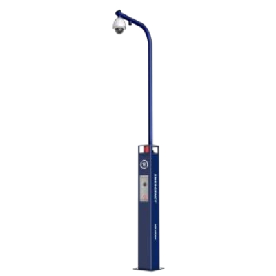 Станция экстренного вызова | Применение: Общежитие, Школы, Площади, Туристические достопримечательности, Больницы, Рынки, Супермаркеты, Вокзалы, Автостоянки | Видео: Камера цветная / Разрешение: 4.0МР 2560×1440@25к/с / Угол обзора 128° | Аудио: Встроенная двухсторонняя связь | Интерфейс: Ethernet 1×RJ45 10/100Mbps / Аудио 1×Микрофон/1×Динамик/1×Вход/1×Выход / Сигнальный 2×Вход/2×Выход / 1×RS485 / 1×MicroSD Карта памяти до 256Gb | Встроенная звуковая сирена | Управление: Механическая кнопка | Протокол: TCP/IP, RTSP, SIP, SNMP | Инсталляция: Наземный монтаж | Цвет: Синий | Применение: Наружное | Материал: Металл | Питание: AC 220V 70W | Температура: -40°C…+70°C | Размер: 400×400×4500мм