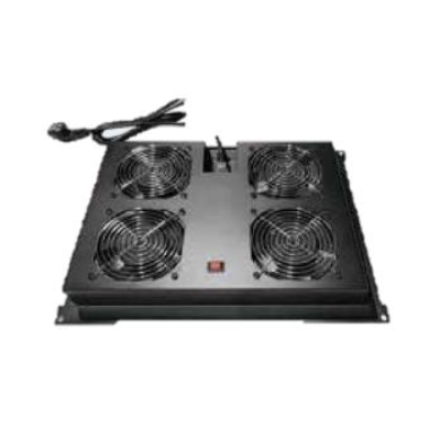 Вентилятор с кабелем для подключения в розетку | Для коммутационного шкафа серии E, обеспечивает вентиляцию | 4×Вентилятора | Цвет: Черный | Глубина: 800мм
