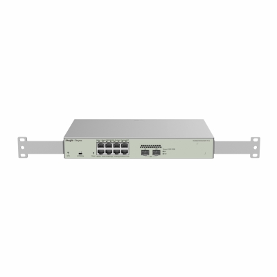 PoE Коммутатор | Уровень: L2 Управляемый | Интерфейс: PoE/PoE+ 8×RJ45 10/100/1’000Мбит/с / Uplink 2×SFP 1’000Мбит/с | Протоколы: STP/RSTP, Voice VLAN, IGMP Snooping v1/v2, CPP, EEE, Syslog, DHCP client, DHCP snooping, SNMP v1/v2c/v3, RLDP, LLDP/LLDP-MED, RLDP, HTTP/HTTPS, Flow control, Cable Testing, Loop Prevention, Cloud management | PoE Стандарт: IEEE 802.3af/at | PoE Бюджет: 125W | Скорость коммутации: 20Гбит/с | Скорость передачи пакетов: 14.88Мбит/с | MTU Кадр сети Ethernet: 9216Байт | LAG Агрегация каналов: 8 групп | ACL Список управлением доступом: 1200 правил | Облачное управление: Ruijie Cloud | Автоматическое аварийное восстановление устройства | Reset Кнопка сброса настроек | MTBF: >200’000 часов | Охлаждение: Пассивное | Материал: Металл | Степень защиты: ESP TVS 6000V Защита от перенапряжения до 6kV | Питание: AC 100V~240V 2A 145W | Температура: 0°C…+50°C | Вес: 1.8кг | Размер: 300×205×44мм